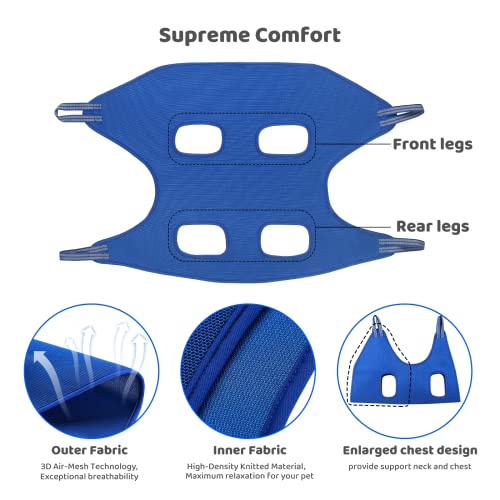 • Wygodny i miękki – dzięki zastosowaniu gęsto tkanej tkaniny jako wyściółki wewnętrznej i wysoce oddychającej technologii 3D Air-Mesh jako materiału zewnętrznego, a także wzmocnionego brzegu na przednich i tylnych nogach zmniejsza się nieprzyjemne tarcie. Twoje zwierzę jest chronione, a szczeniaki pozostają spokojne i mogą się zrelaksować.