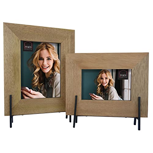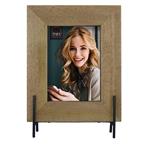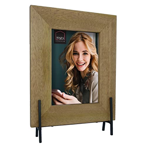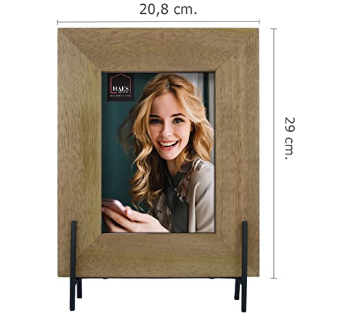 HAES DECO – Drewniana ramka na zdjęcia 13 x 18 – rustykalne drewno Cordoba w kolorze brązowym – ramka na zdjęcia naturalne drewno lite – ramka portretowa z czarnym metalowym stojakiem – na 1 zdjęcie 13 x 18 cm format pionowy – SP118