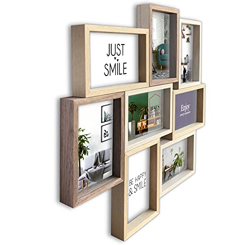 • Drewniana ramka na zdjęcia na 8 zdjęć 10 x 15 do zawieszenia w poziomie lub w pionie
