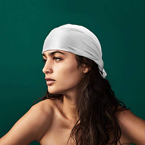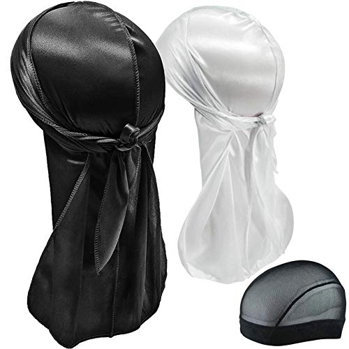 Hairizone Silky Durags, zestaw 2 duragów, jedwabisty durag dla mężczyzn i kobiet (czarno-biały + 1 czapka)