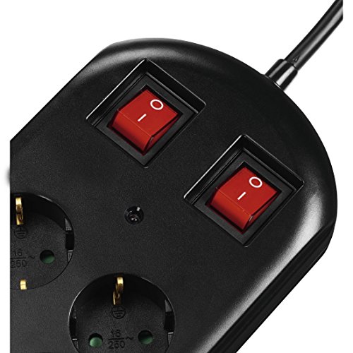 Hama Listwa zasilająca z 10 gniazdami (ochrona przed przepięciem, dwa przełączniki do łączenia grupowego, oczka do montażu na ścianie, organizer kablowy, obracany o 45°, maks. 3500 W, kabel 2 m)