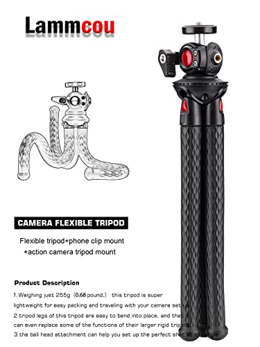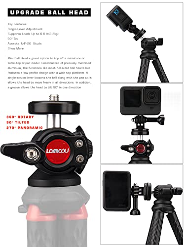 Lammcou Statyw do telefonu komórkowego, elastyczny statyw do smartfona z w pełni wychylnym pochyleniem kulowym, pionowym i poziomym uchwytem na statyw i adapterem Go Pro, statyw do aparatu