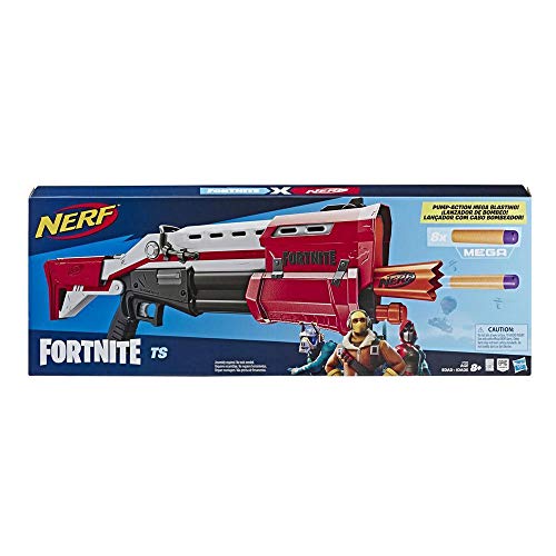 Hasbro Nerf E7065EU4 TS Pump-Action Blaster, 8 Nerf Mega Fortnite Darts, Dartaufbewahrungsfach – Für Jugendliche und Erwachsene Rot