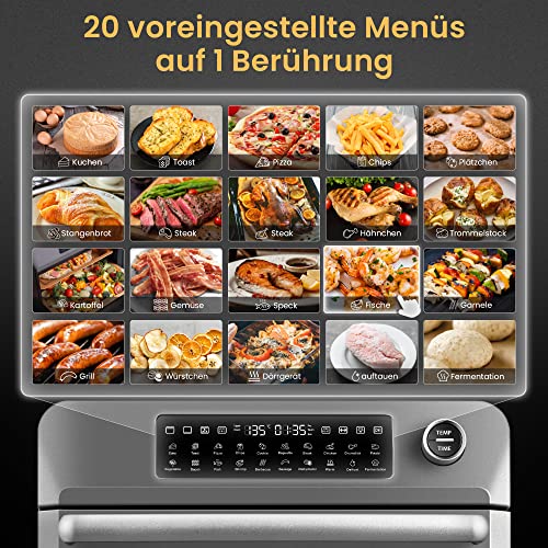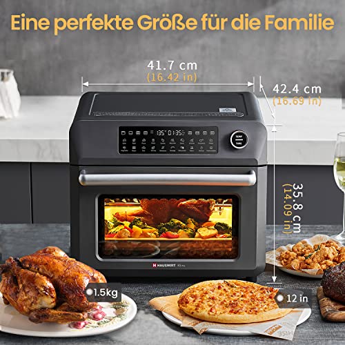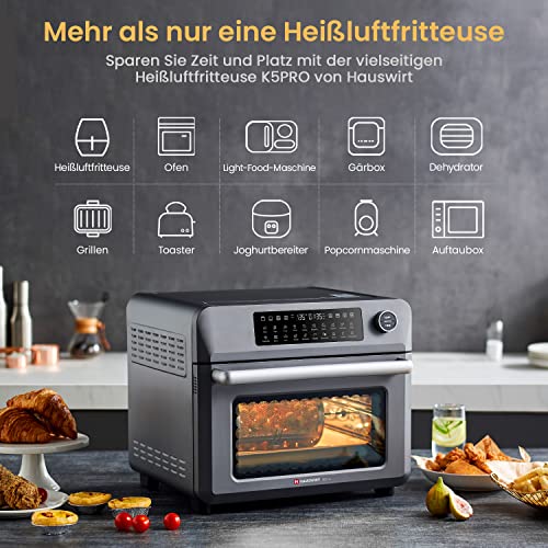 Hauswirt Frytkownica na gorące powietrze 25 l, frytkownica na gorące powietrze XXL, Airfryer z cyfrowym ekranem dotykowym LED, mini piekarnik z płytami grzewczymi, 20 programów, rozmrażanie, fermentacja, emaliowana, podwójne oszklenie