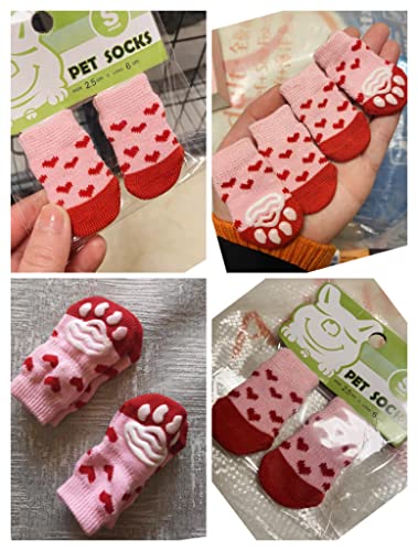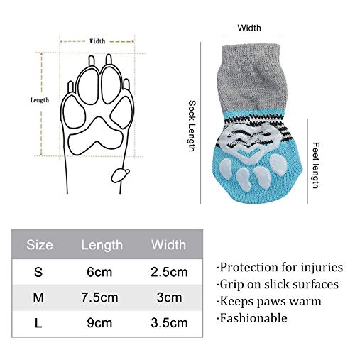 NO Heiqlay skarpetki dla psa skarpetki dla zwierząt pies kot łapa ochraniacz trakcji skarpety do noszenia wewnątrz antypoślizgowe urocze utrzymują ciepło zwierzę domowe pies kot skarpetki z gumowym wzmocnieniem, 4 zestawy, S