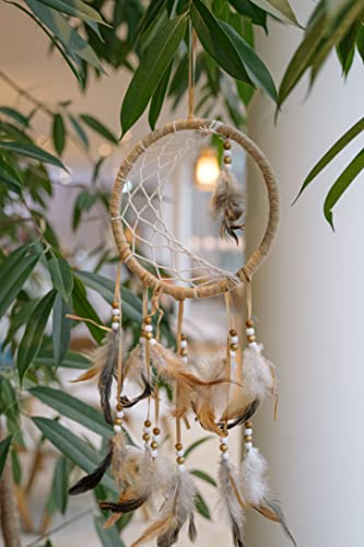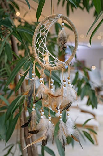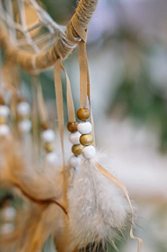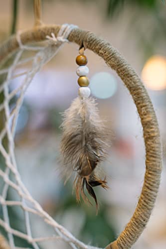 Atrakcja: Ten łapacz: Atrakcja: Ten łapacz snów w naturalnych odcieniach jest ozdobiony białymi i brązowymi drewnianymi koralikami, tasiemkami i piórami w odcieniach brązu. Średnica kółka: 20 cm, długość całkowita: 46 cm.