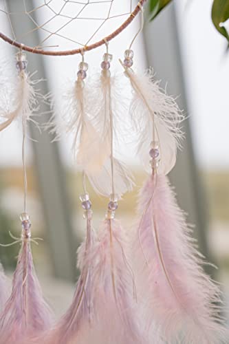 Atrakcja: Ten filigranowy: Atrakcja: Ten filigranowy łapacz snów z wysokiej jakości materiałów jest bogato ozdobiony drewnianymi koralikami, tasiemkami i piórami w delikatnym bzu. Średnica kółka: 16 cm, długość całkowita: 40 cm.