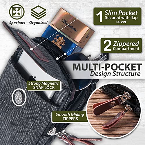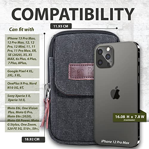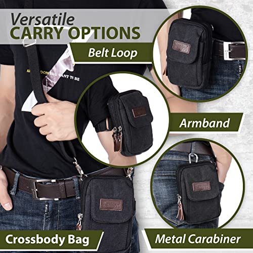 Hengwin męska mała torba na ramię, płócienna mini torba na ramię uchwyt na telefon torebka iPhone 11 Pro Max XS Max 11 SE X XS XR 7 8 Plus, etui na telefon komórkowy Samsung Galaxy Note 20 Ultra S20 A42 5G 10 9 8 (czarna