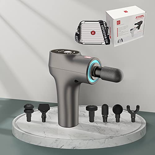 Hi5 FlatHead masażer wibracyjny do masażu powięzi, tkanka, relaks 6 stopni prędkości z systemem Smart Light 6 nakładek na głowicę / szary / twarda obudowa