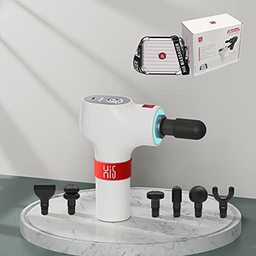 Hi5 FlatHead masażer wibracyjny do masażu powięzi, tkanka, relaks 6 stopni prędkości z systemem Smart Light 6 nakładek na głowicę / biały / twarda obudowa