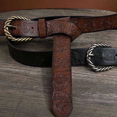 HiiFeuer Viking Fenrir Wytłaczany Pasek ze Sztucznej Skóry, Pas Średniowiecznego Rycerza