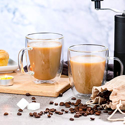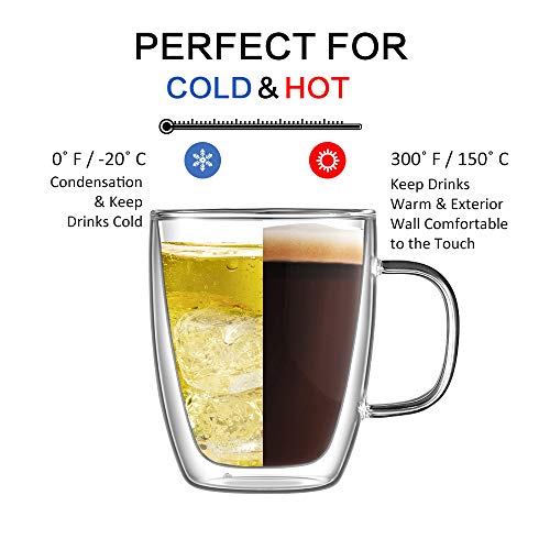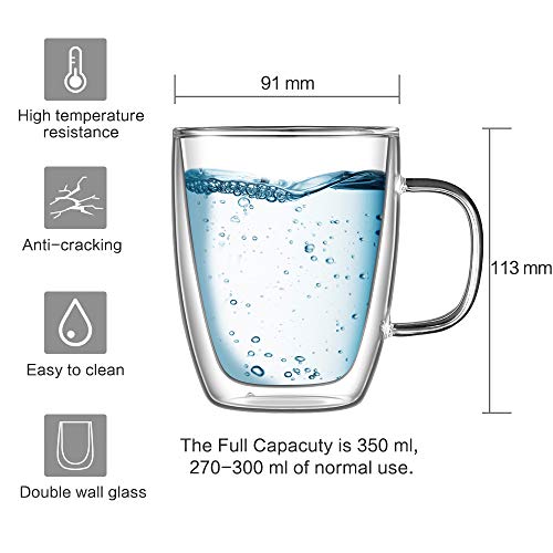 hirmit Zestaw szklanek z podwójnymi ściankami, filiżanki do kawy, 350 ml, do espresso, herbaty, latte Cola, cappuccino