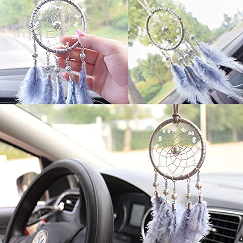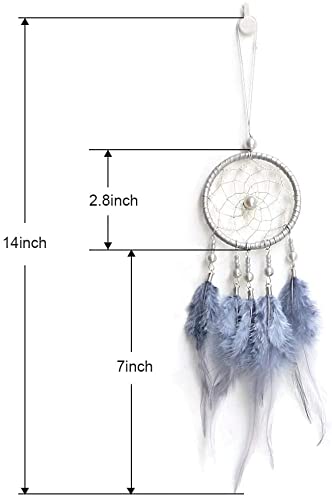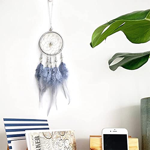 HOIER Łapacz snów, ręcznie wykonany, łapacz snów z piórami, łapacz snów, ozdoba na ścianę, ozdoba do mieszkania, ornamenty, rzemiosło, szary