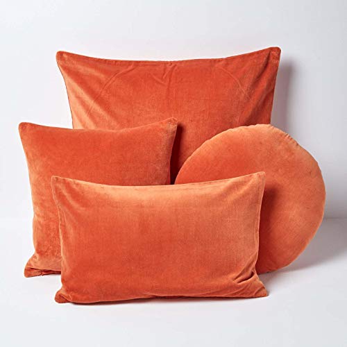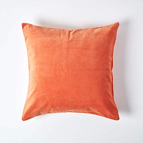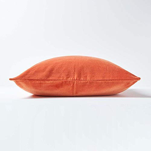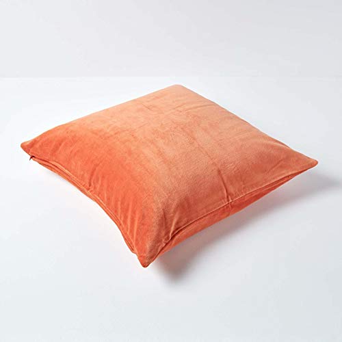 HOMESCAPES Spalona pomarańczowa aksamitna poszewka na poduszkę super miękka bawełniana aksamitna luksusowa kwadratowa poduszka dekoracyjna zwykła akcentująca poduszka na sofę i łóżko dekoracja z ukrytym zamkiem błyskawicznym, 40 x 40 cm