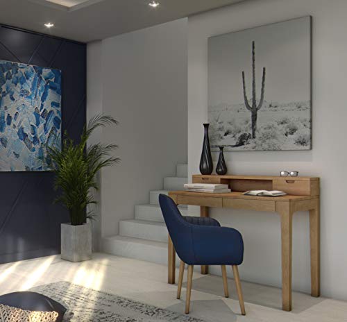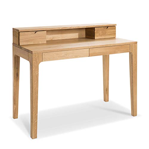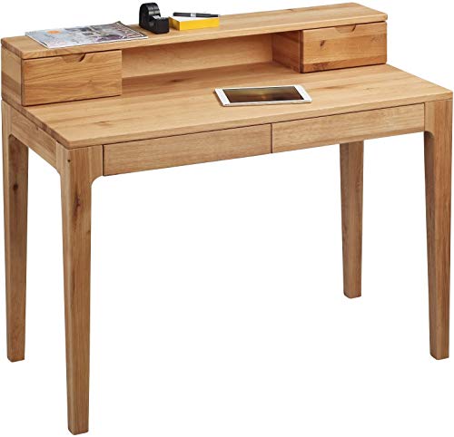 Hometrends4You 612522 Biurko/Sekretarzyk/Stolik Konsola Oskar, Prawdziwe Drewno Dzikiego Dębu Lity Olejowany, z Szufladami i Nakładką, 110 X 55 cm, Wysokość Całkowita 96 cm, Wysokość Blatu 76 cm