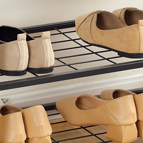 • Idealne przechowywanie: górna ścianka działowa pomieści ramki na zdjęcia i akcesoria, 9 ruchomych haczyków, dzięki czemu można używać według uznania. Ławka do siedzenia z 2 półkami z siatki, odpowiednia do maksymalnie 6-8 par butów