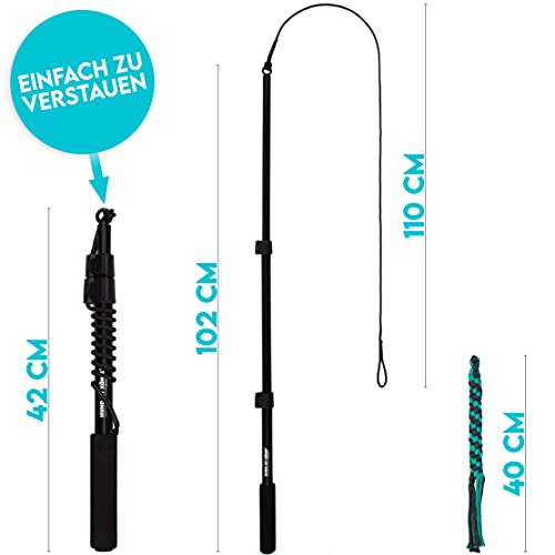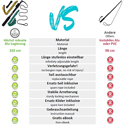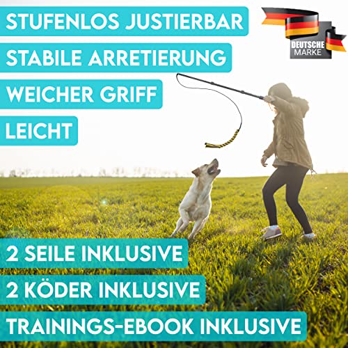 ✅ Bezprzykładowa jakość: profesjonalny: Bezprzykładowa jakość: profesjonalny niepokój drażniący dla psów. Wytrzymały drążek teleskopowy z bezstopniową blokadą. Miękko wyściełany uchwyt. Wytrzymała, nieelastyczna linka zapobiega przypadkowemu szybkiemu powrotowi. Zabawka do żucia ze 100% bawełny.
