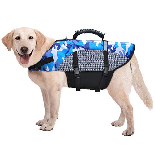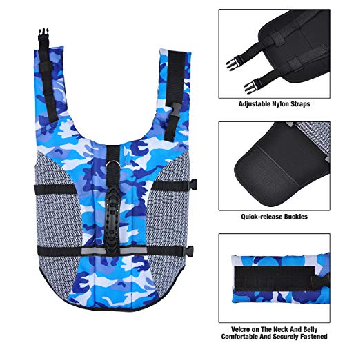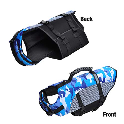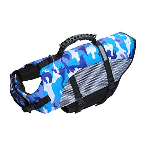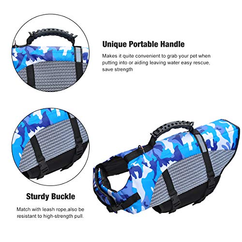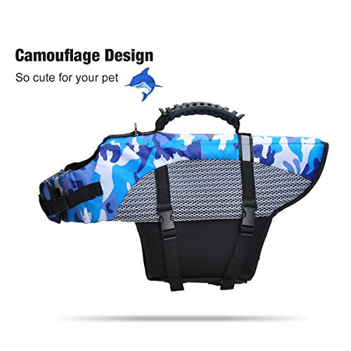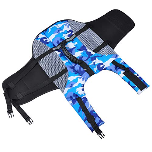 • STYLOWY: Został zaprojektowany w niebieskim stylu kamuflażowym, dzięki czemu Twój zwierzak wygląda uroczo i atrakcyjnie. Niebieski kolor ułatwia identyfikację w nocy lub w dzień. Posiada regulowane nylonowe paski i klamry do szybkiego mocowania kurtki ratunkowej, bezpieczne zapięcie.
