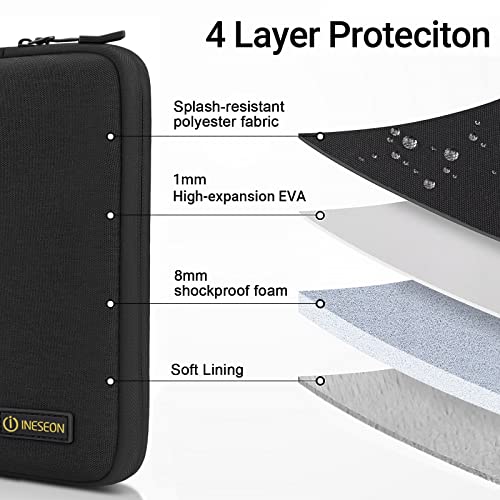 • [Czterowarstwowa ochrona]: Zewnętrzna warstwa obudowy laptopa 13-calowego wykonana jest z grubszej, odpornej na zachlapanie tkaniny. Środkowa warstwa jest wyściełana 8 mm pianką odporną na wstrząsy i 1 mm EVA. Miękka podszewka w warstwie wewnętrznej zapewnia dobrą ochronę przed zarysowaniami. Wszystkie strony (z wyjątkiem strony zamka błyskawicznego) i rogi pokrowca na laptopa są wyściełane pianką 5 mm.