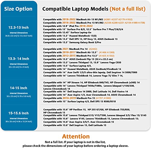 • [Kompatybilność]: 13-calowy pokrowiec na laptopa jest kompatybilny z MacBook Air 13 M1/M2 (A2179 A1932 A2337), 2016-2022 MacBook Pro 13 (M1/M2), 12,3″ Surface Pro 7/6/5/4, 13″ Surface Pro 8/X, 12,5″ Surface Laptop Go, HP Envy 13, 2018-2020 12,9” iPad Pro i inne tablety laptopów.