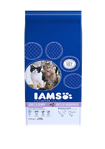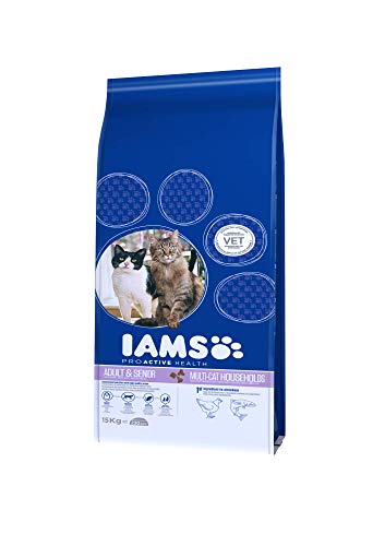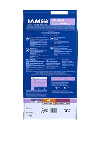 IAMS Multi-Cat Sucha karma dla gospodarstw domowych z kilkoma dorosłymi lub starszymi kotami, z kurczakiem jako głównym składnikiem, zawiera dużo wysokiej jakości białka zwierzęcego, 15 kg