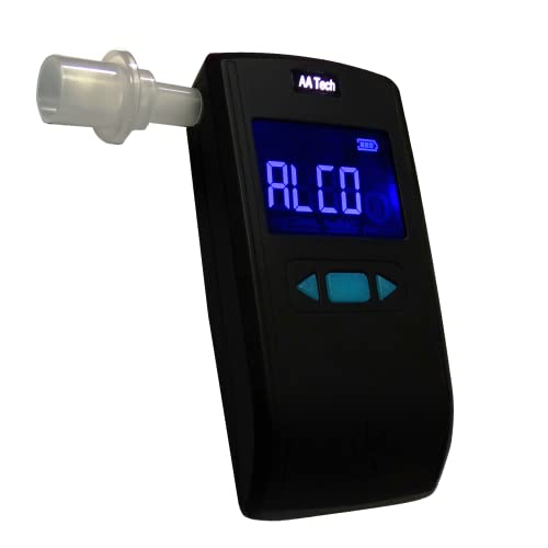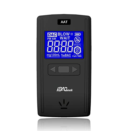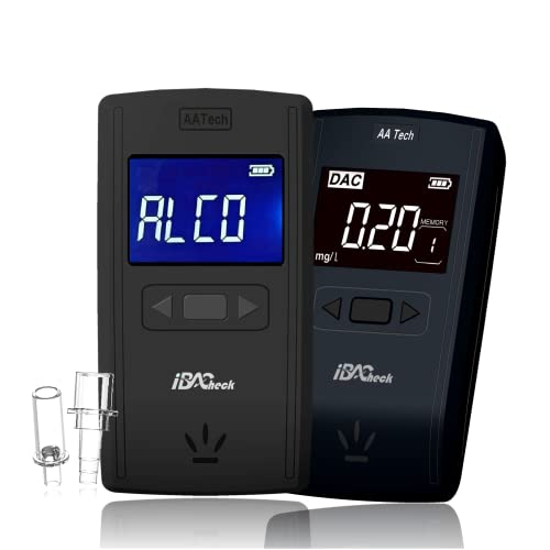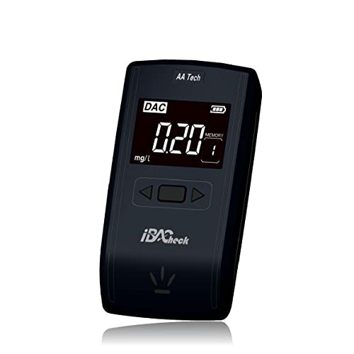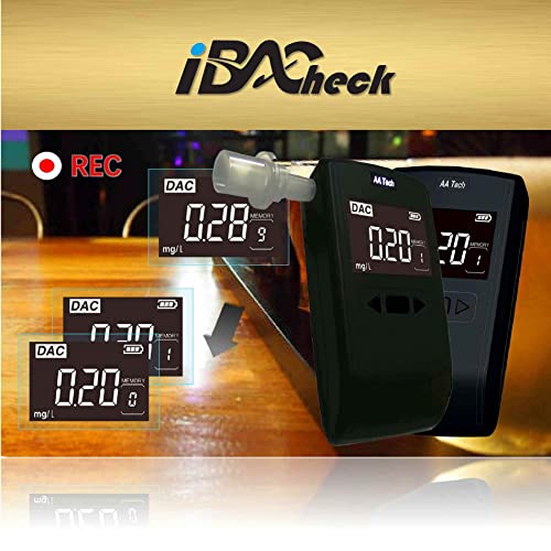 iBACheck Cyfrowy alkomat z możliwością ponownego ładowania z wyjmowanym akumulatorem i niskim zużyciem energii. Tester promili z 8 ustnikami i wyświetlaczem LED (czarny)