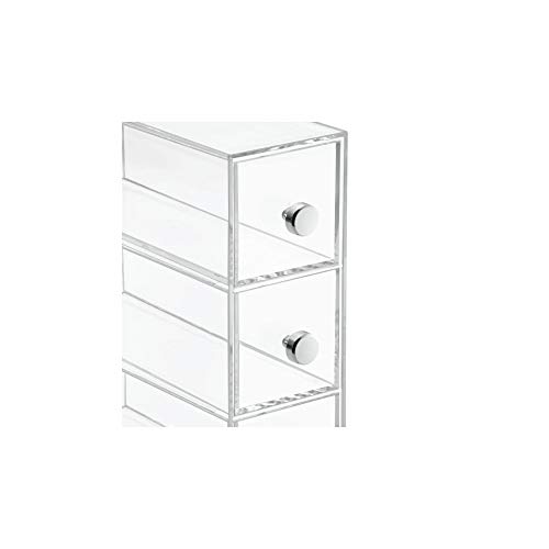 IDesign Organizer Makijażu z 4 Szufladami, Wąska Wieża z Tworzywa Sztucznego do Przechowywania Kosmetyków, Przezroczysty