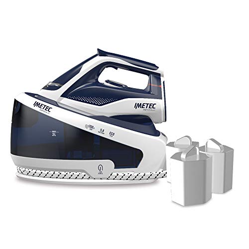Imetec ZeroCalc PRO PS2 2400 Dampfbügeleisen, Antikalk-Technologie, bis zu 5,8 bar Pumpe, Dampfstoß 260 g, Schiebeplatte aus Keramik, 3 Antikalkfilter im Lieferumfang enthalten.