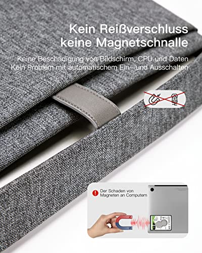 • Bezpieczeństwo: bez magnesu lub zamka błyskawicznego, miękka sprzączka PU nie porysuje laptopa. Nie zawiera magnesu, nie uszkadza ekranu laptopa, danych CPU lub dysku. Zapobiega przypadkowemu włączeniu lub wyłączeniu ekranu laptopa przez etui.