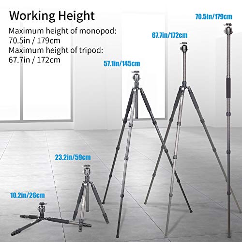 ✅ Przenośny: statyw RT75C: Przenośny: statyw RT75C z włókna węglowego jest wykonany z lekkiego włókna węglowego, statywu i głowicy kulowej. Waga netto wynosi tylko 1,98 kg. Wyposażamy dla Ciebie profesjonalną torbę na statyw, długość statywu wynosi tylko 47 cm po złożeniu, można ją umieścić w torbie na statyw, wygodna do prze