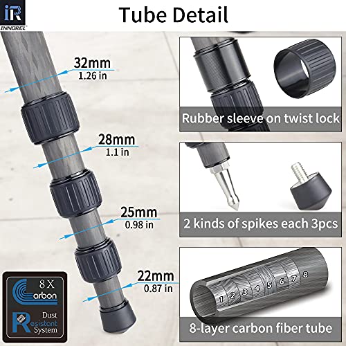 INNOREL RT80C trójnożny statyw z włókna węglowego profesjonalny statyw do aparatów o dużej wytrzymałości ultra stabilny maks. rura 32 mm maksymalne obciążenie 20 kg wysokość robocza 27-160 cm z adapterem miski 65 mm / torbą (Orginal-RT80C)