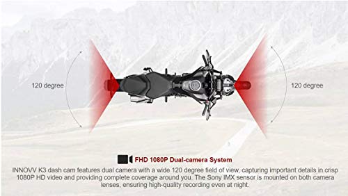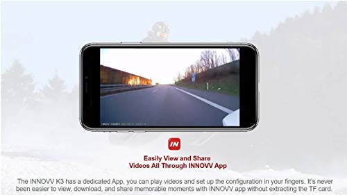 INNOVV K3 Edition Motocyklowa podwójna przednia i tylna dopasowana kamera motocyklowa. Kamera na deskę rozdzielczą. Nagrywanie w pętli. Automatyczne włączanie/wyłączanie. Aplikacja WiFi. Mikrofon zewnętrzny, zdalny wyświetlacz