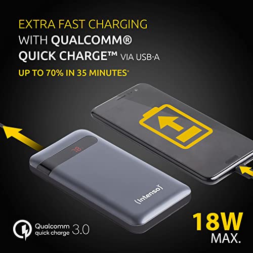 Intenso 7332330 Powerbank PD 10000 – zewnętrzny akumulator z funkcją Power Delivery & Quick Charge 3 (10000 mAh, odpowiedni do smartfonów, tabletów, odtwarzaczy MP3, aparatu cyfrowego), czarny