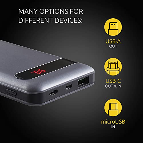 • Uniwersalna kompatybilność: różne złącza typu C In/Out, USB Out i microUSB IN umożliwiają najwyższą kompatybilność ze wszystkimi aktualnymi smartfonami, tabletami i laptopami