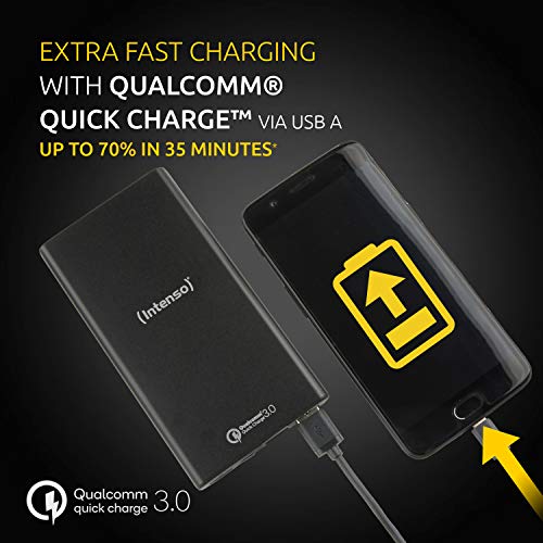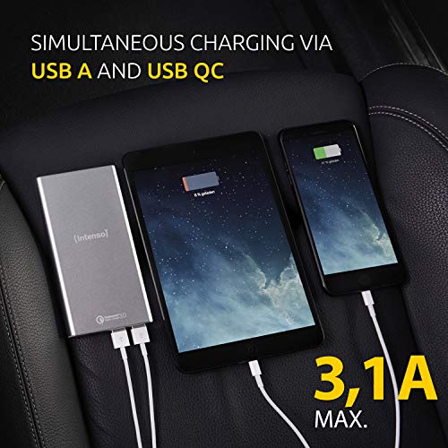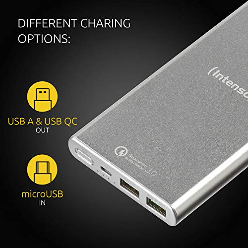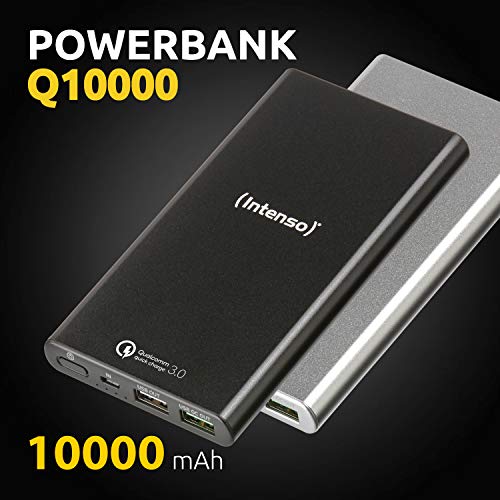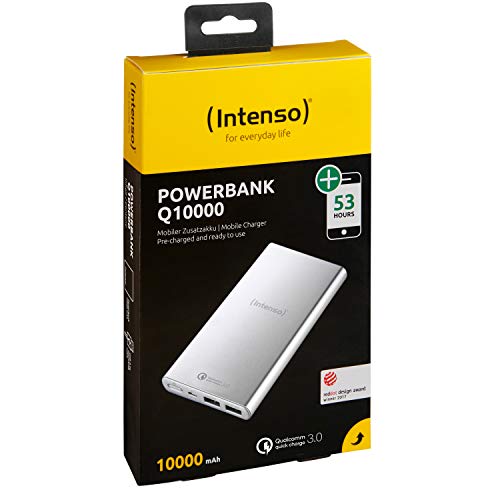 Intenso Power Bank Q10000, przenośna ładowarka, Quickcharge (10000 mAh, kompatybilna ze smartfonem/tabletem PC i innymi), srebrna