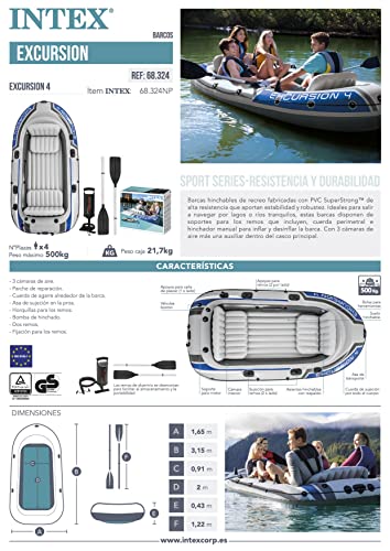Intex Excursion 4 Set Schlauchboot – 315 x 165 x 43 cm – 3-teilig – Mehrfarbig