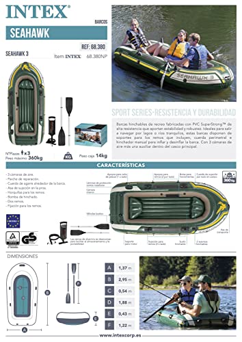 Intex Uniseks Seahawk 3 68380NP Ponton Dmuchany, Zielony, 2.95m x 1.37