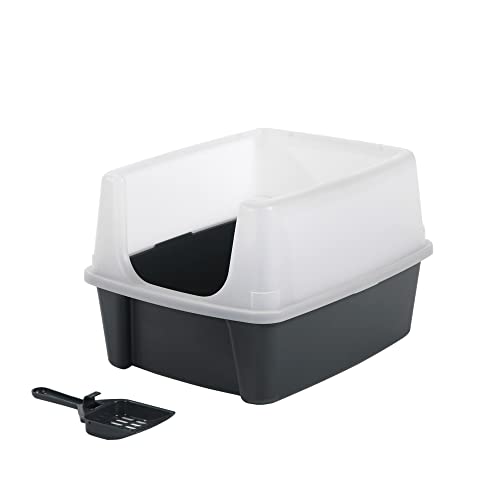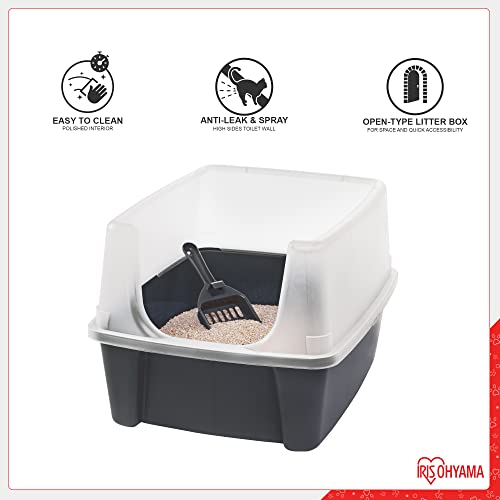 Iris Ohyama, Katzenklo / Katzentoilette mit hohem Rand, keine Verbreitung von Streu, abnehmbarer hoher Rand, Eingangshöhe: 15 cm, Schaufel inkl. für Katze – Cat Litter Box CLH-12, Grau