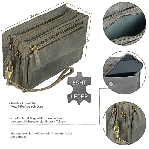• Wysokiej jakości torba na nadgarstek z prawdziwej skóry dla mężczyzn, która chętnie ma wszystko co ważne: portfel, portfel, dowód osobisty i dokumenty, klucze samochodowe itp.
