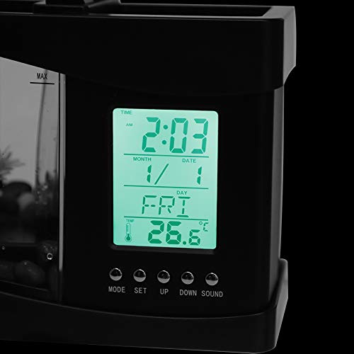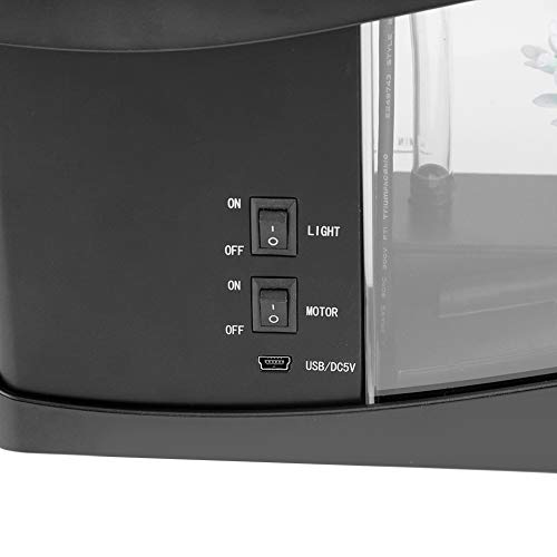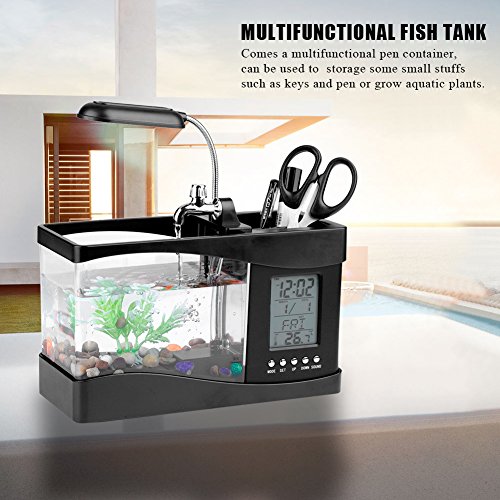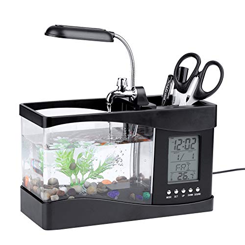 Mini akwarium, wielofunkcyjny akumulator USB na biurko Fry Fish Aquatic Water Tank z funkcją zegara LED Light(czarny)