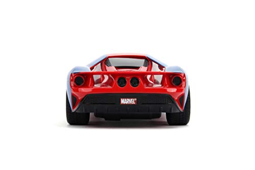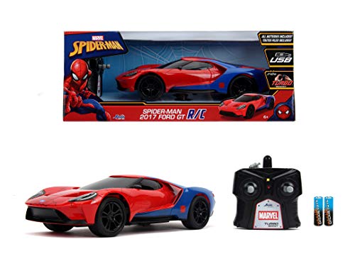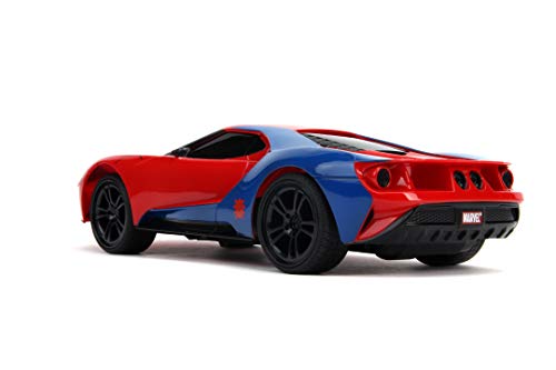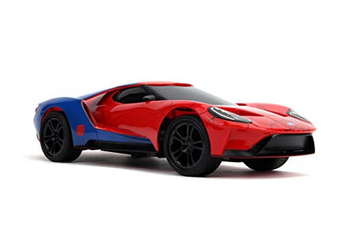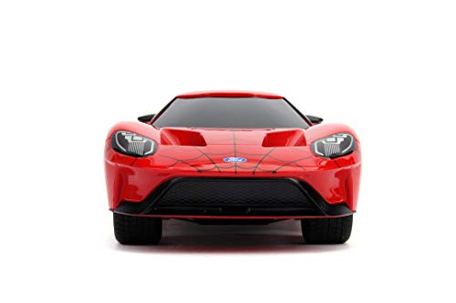 Jada Toys Marvel Spiderman 2017, Ford GT RC, zdalnie sterowany samochód, funkcja turbo, 2-kanałowy pilot zdalnego sterowania, funkcja ładowania USB, w zestawie baterie, 1:16, 29 cm