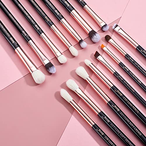 Jessup Profesjonalny zestaw pędzli do makijażu oczu, 15 szt. cieni do powiek, korektor do brwi, eyeliner, pędzel do cieniowania z etykietą, czarny/różowe złoto T157
