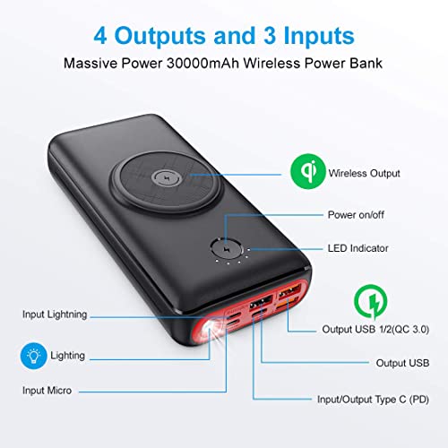 JIGA Powerbank 30 000 mAh, przenośna ładowarka akumulatorowa, 18 W, USB C 3.0, z latarką, 3 wejściami i 5 wyjściami, urządzenie kompatybilne z iPhone, Samsung, Huawei, iPad itp.