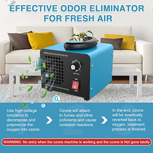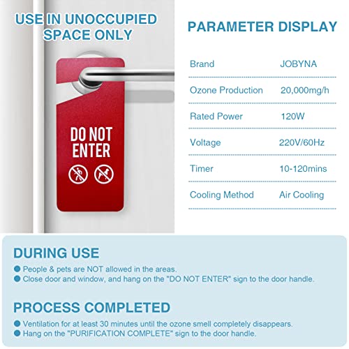 • 【Łatwa obsługa】 Wystarczy włączyć przełącznik i ustawić czas produkcji ozonu i opuścić obszar. Wszystkie generatory ozonowe powinny być stosowane wyłącznie w pomieszczeniach niezajętych. Proszę otworzyć drzwi i okno w celu wietrzenia przez ok. 30 minut. i nie zostawiać do miejsca w pobliżu osób lub zwierząt domowych.