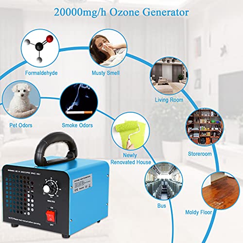 • 【Wysoka wydajność】 Maksymalna wydajność ozonu na godzinę wynosi 20 000 mg/h. Obudowa ze stali przemysłowej sprawia, że ten środek czyszczący jest łatwy w konserwacji. Bez filtra do czyszczenia. Bardzo niskie zużycie energii. Produkuje gaz ozonowy, aby wypełnić całe pomieszczenie i całkowicie wyczyścić powietrze w każdym rogu