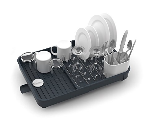 Joseph Joseph Rozszerzony rozszerzalny stojak na ociekacz do naczyń ze zdejmowaną uchwytem na sztućce Obrotowa wylewka odprowadzająca – szary