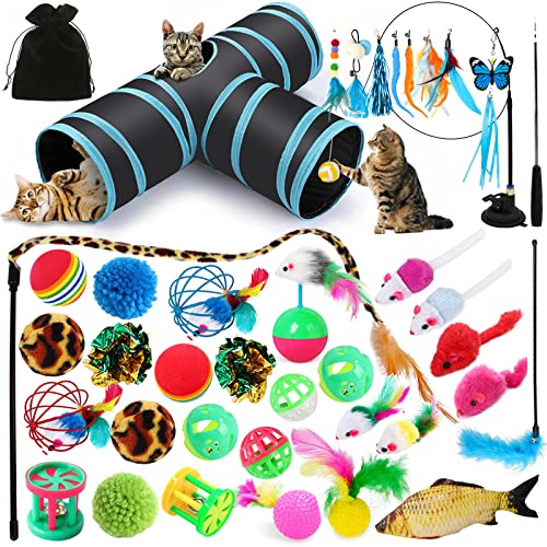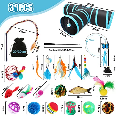 Zestaw zabawek dla kotów z tunelem dla kota, 39 sztuk, zabawki dla kot