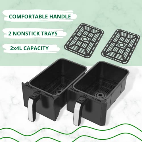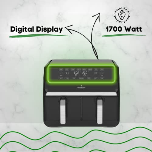 Just Perfecto Podwójna frytkownica bez oleju XXL 8L 1700 W | Szara Stal nierdzewna z funkcją timera i cyfrowym ekranem dotykowym Można myć w zmywarce Książka z przepisami w zestawie Airfryer, (JL-09)