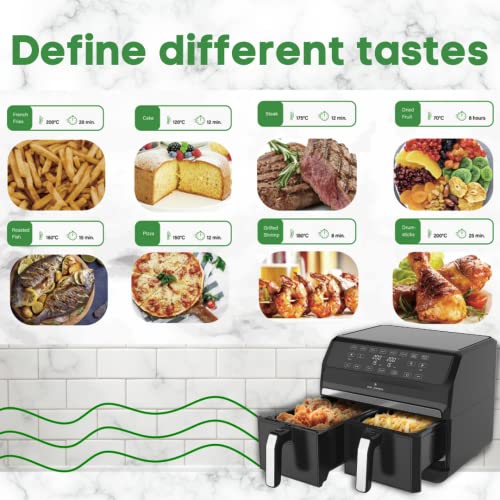 ✅ Dzięki funkcji podwójnej: Dzięki funkcji podwójnej gotowania możesz łatwo powielić ustawienia lewego kosza i odpowiedni koszyk … potrząśnij frytkami między nimi