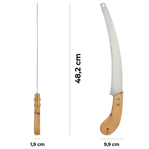 KADAX Piła ogrodowa ze stali, długość brzeszczotu 330 mm, piła ręczna z drewnianym uchwytem, piła do gałęzi, piła do drewna z otworem